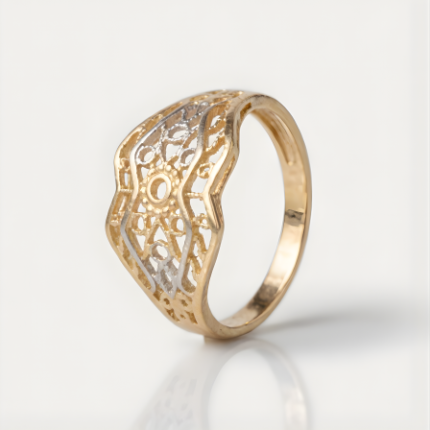 21K Baby Gold Ring Round Filigree Design – Lightweight 0.920g