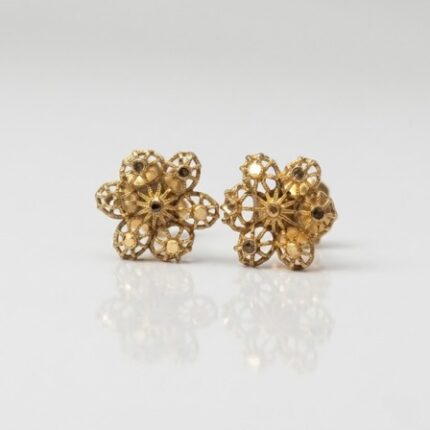 21K Gold Filigree Flower Stud Earrings – 0.870g Floral Design