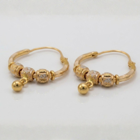 21 Carat Gold Hoop Earrings with Diamond Cut Barrel Beads | 2.400g