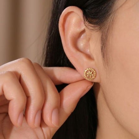 Be the first to review “21 Carat Gold Round Star Cutwork Stud Earrings | 0.660g Pure Gold”
