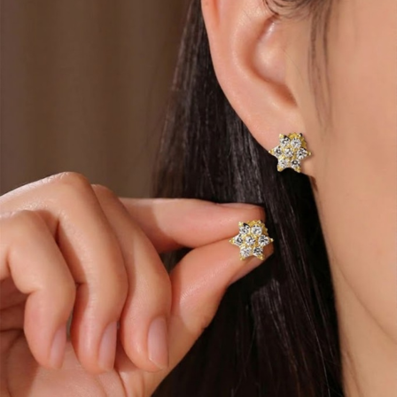 - Style: Five point star diamond cluster stud tops