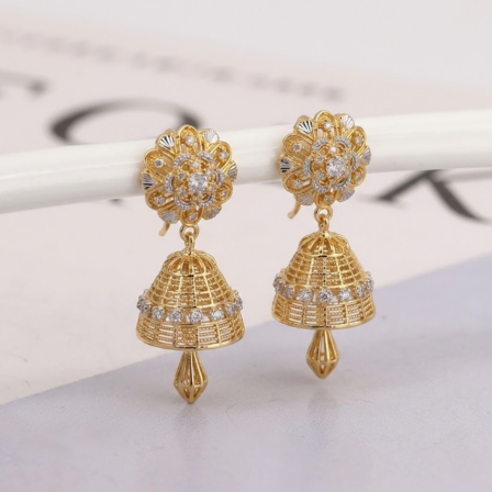 - Style: Two-tone zirconia flower stud cone jhumka earrings