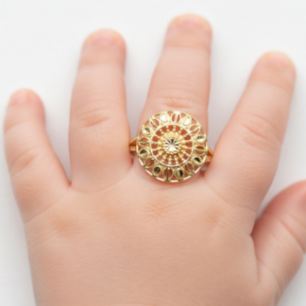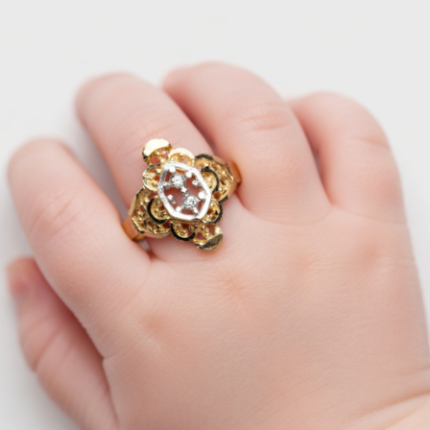 21K Gold Baby Ring | 0.600 Gram Ornate Floral Design with Diamonds