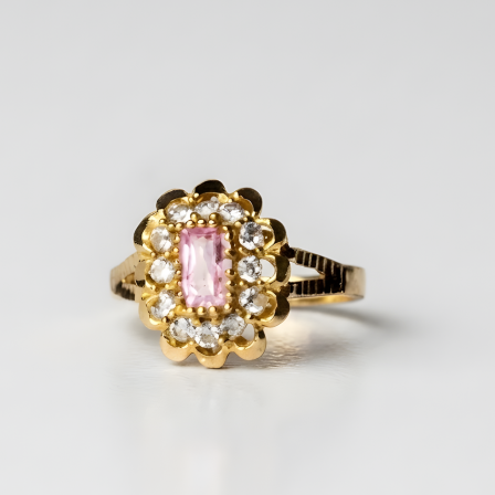 21K Gold Baby Ring with Pink Stone & Diamond Halo | 1.150g