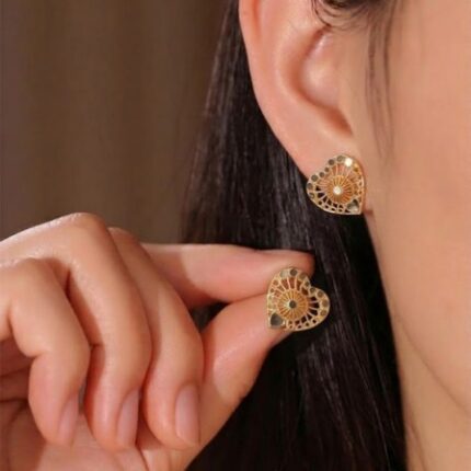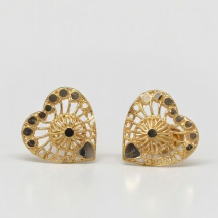 21K Gold Heart Shape Filigree Stud Earrings – 1.180 Grams