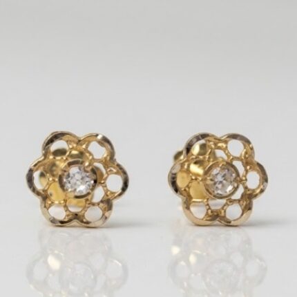 21K Gold Flower Stud Earrings with Diamond – 0.800 Grams