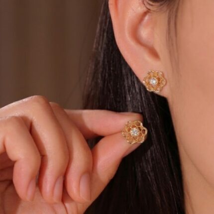21K Gold Flower Stud Earrings – 1.220 Grams Real Gold Earrings